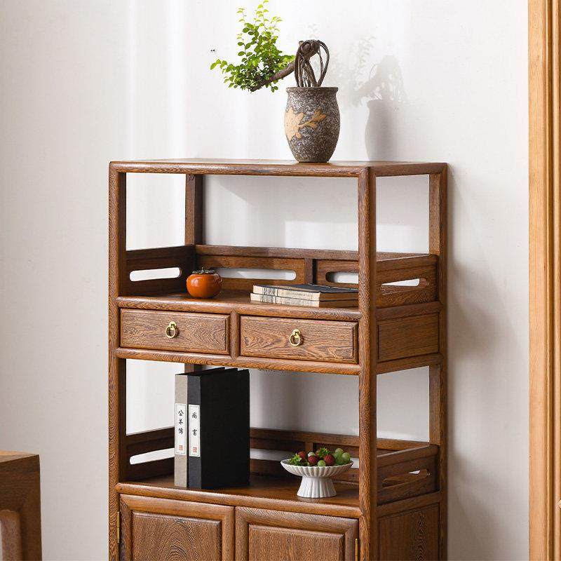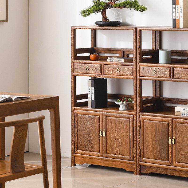 鸡翼木餐具柜全实木茶柜新型中式边桌双门柜红木小书架茶柜储物柜