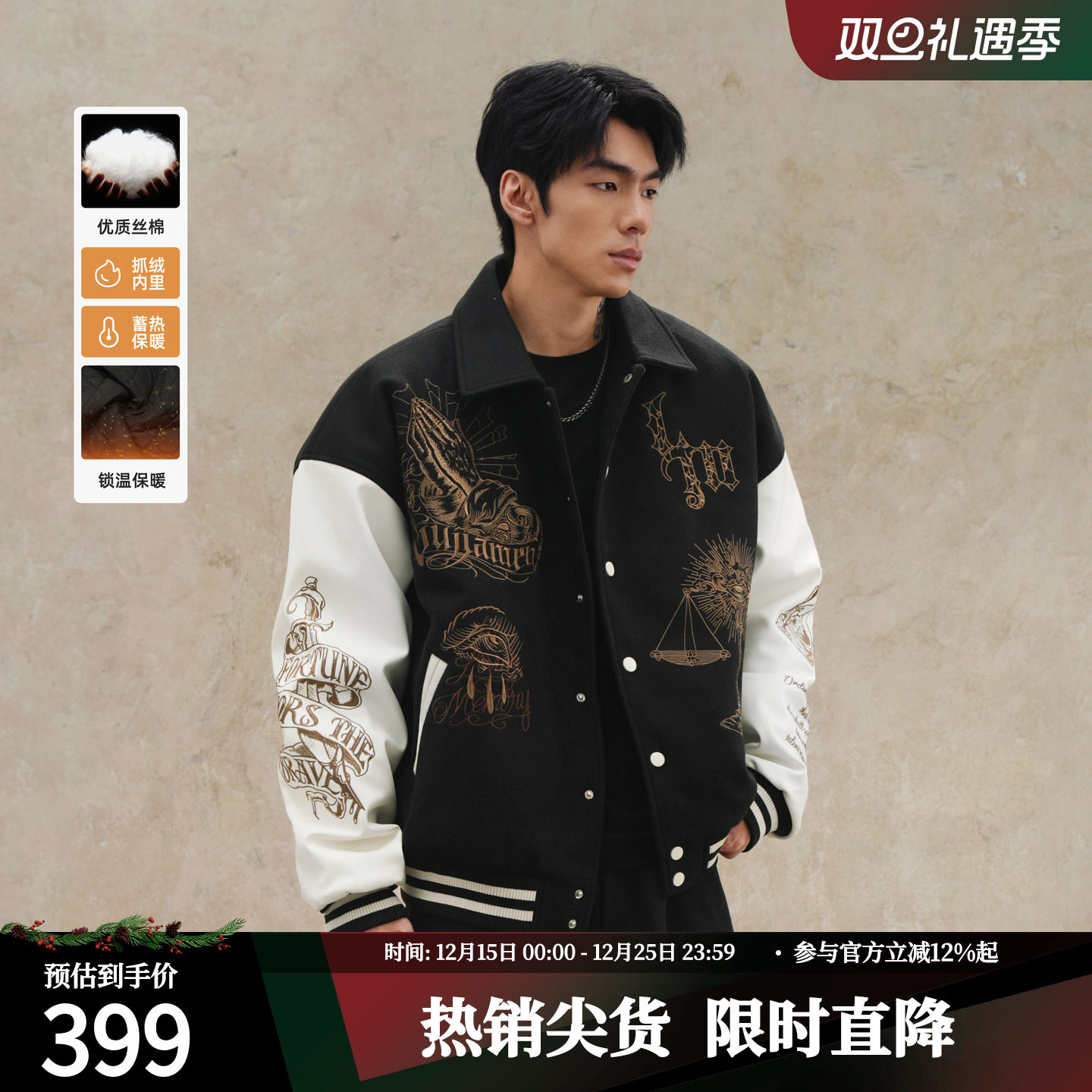 鹿家门美式开衫加厚棒球服男士秋冬重工运动外套宽松大码保暖棉服