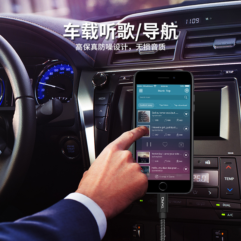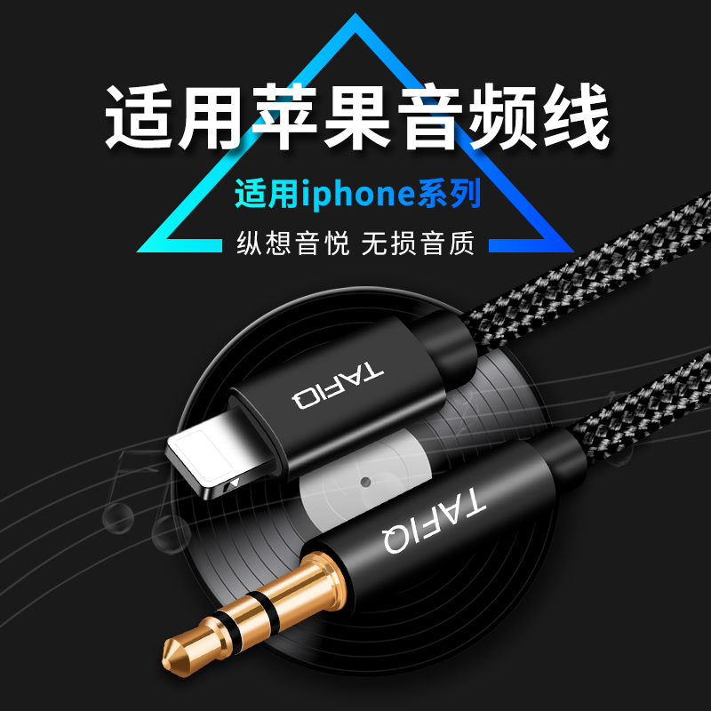 塔菲克适用苹果7车载aux音频线iPhone11车用音频连接线转换音频13手机音箱听歌3.5mm公对公转接线aus转接头
