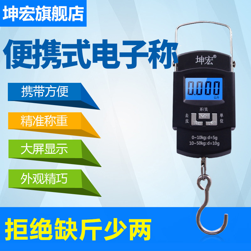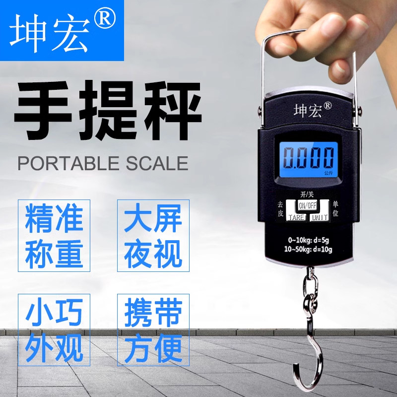 坤宏官方50kg便携式手提秤快递秤买菜秤吊钩秤行李秤称重精度0.01