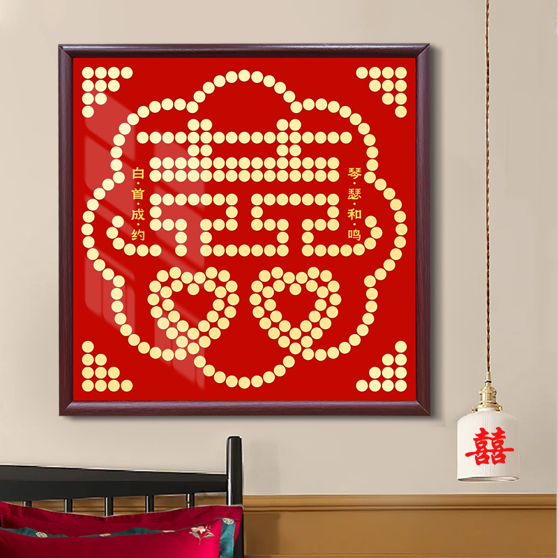 喜字硬币相框百喜图结婚新婚送新人新娘礼物五毛钱喜字贴手工diy