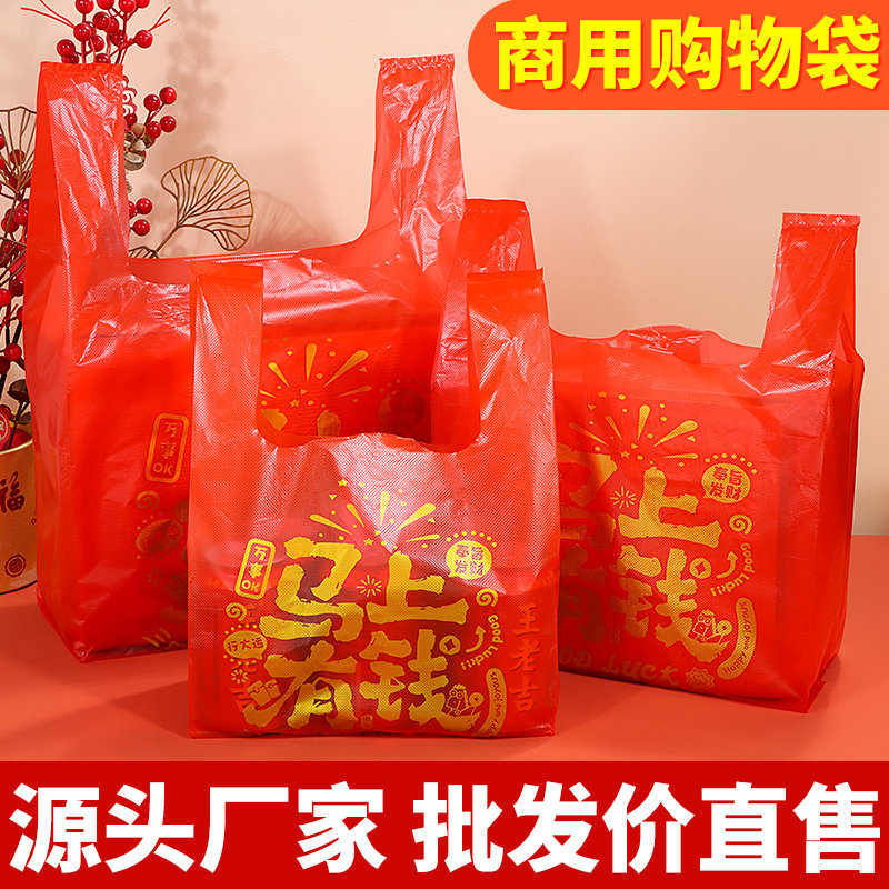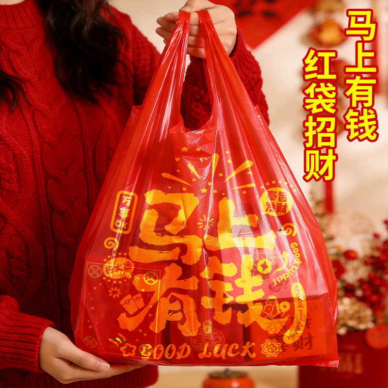 红色购物袋手提式塑料袋家用春节日喜庆方便袋背心式打包袋包装袋