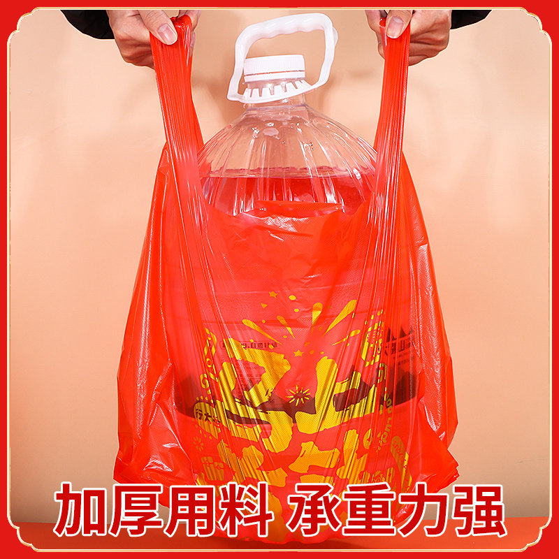推荐理由:红色购物袋手提式塑料袋家用春节日喜庆方便袋背心式打包袋包装袋
