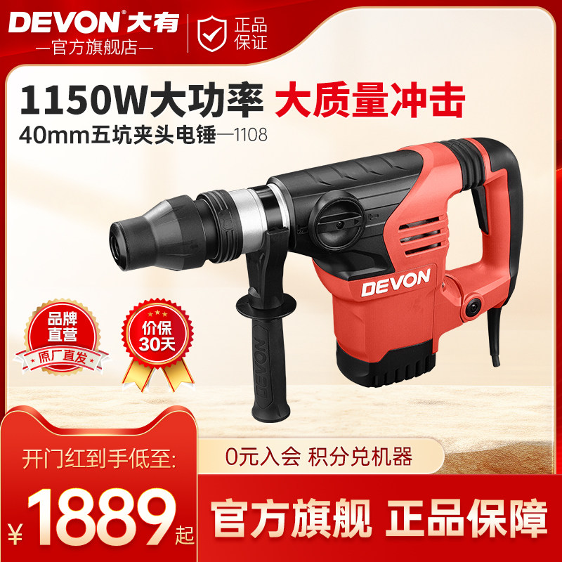 大有40mm电锤电镐1108两用工业级冲击钻混凝土多功能专业电动工具