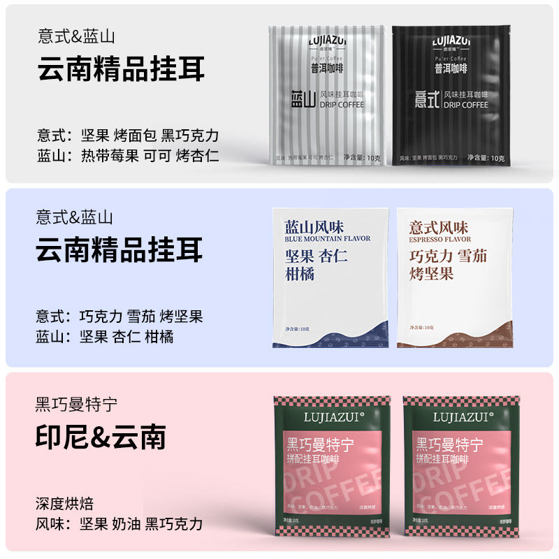 鹿家嘴云南挂耳咖啡手冲精品滤袋咖啡0加糖意式蓝山尝鲜装10g*4片
