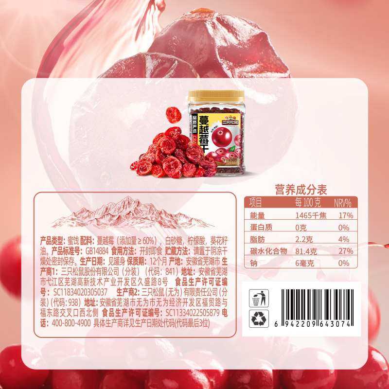 【三只松鼠_蔓越莓干】雪花酥烘焙专用即食孕妇休闲零食蜜饯批发