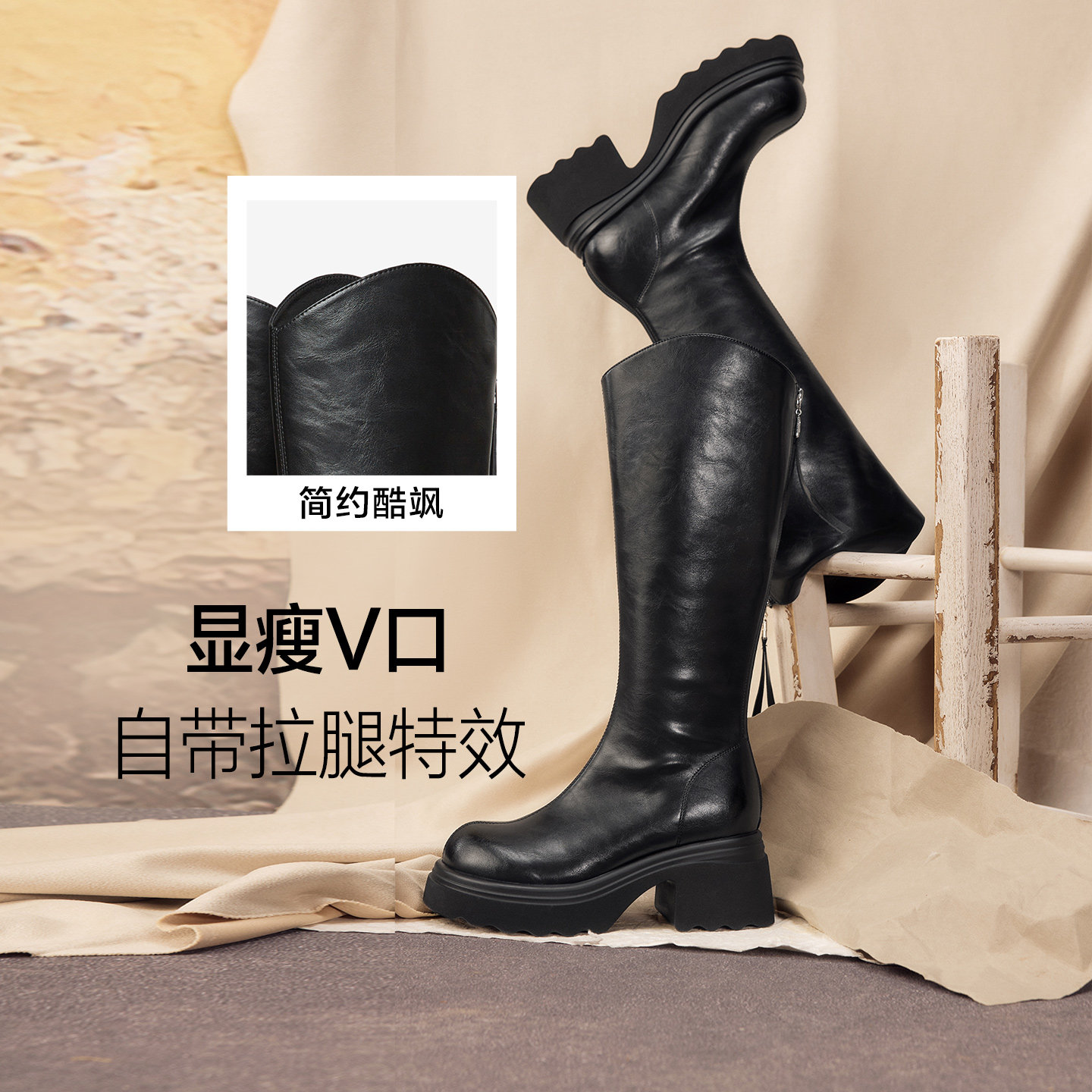 【李佳琦直播间】百思图骑士靴时尚潮流粗跟女长靴F2181DG5Z