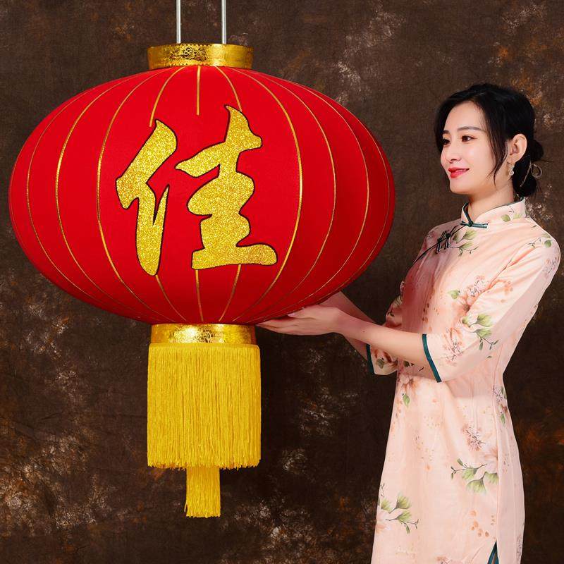 欢度佳节灯笼大门口户外防水防晒元旦植绒布新年大红欢度春节灯笼