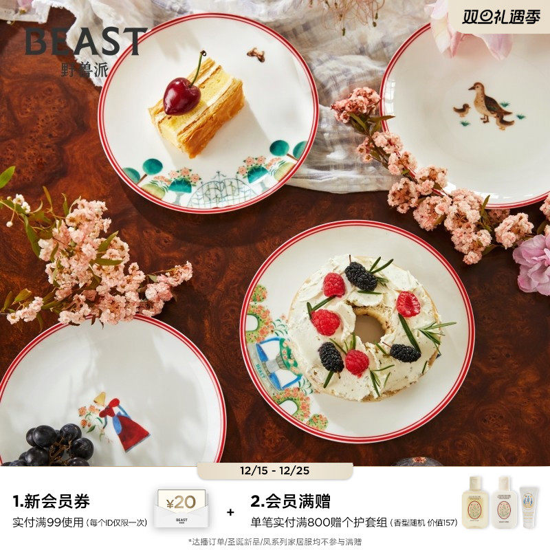 【圣诞礼物】野兽派野兽的花骨瓷盘子4件套装礼盒新婚礼物下午茶