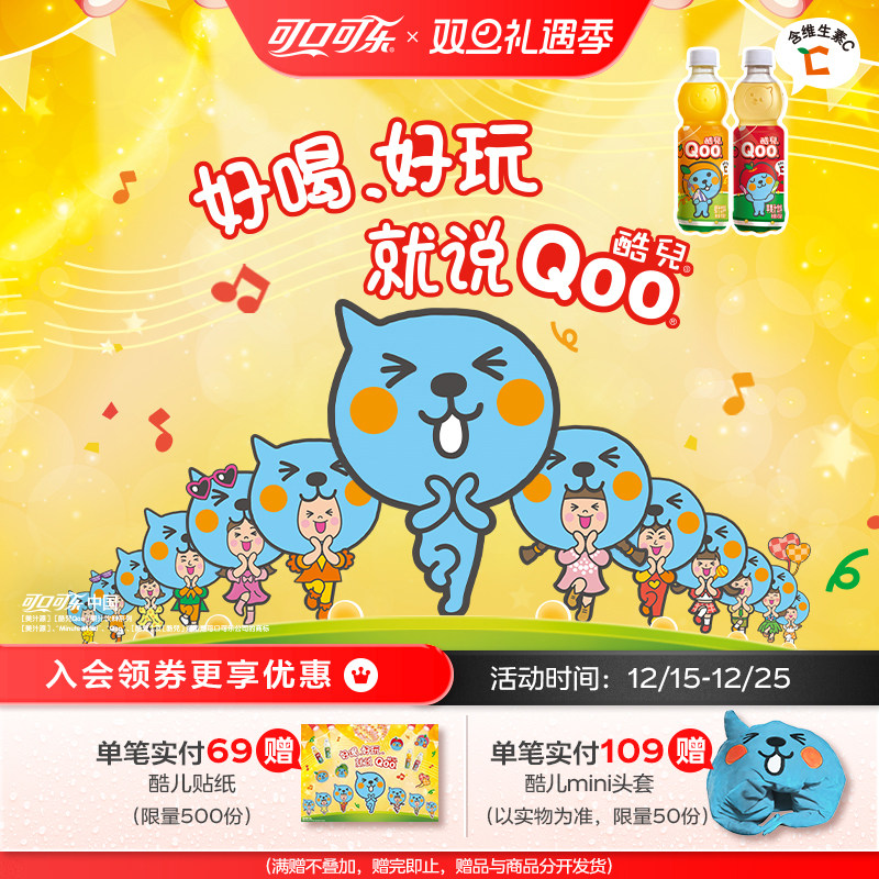 美汁源酷儿Qoo果汁果味饮料橙汁含维生素C苹果味450ml*12瓶整箱装