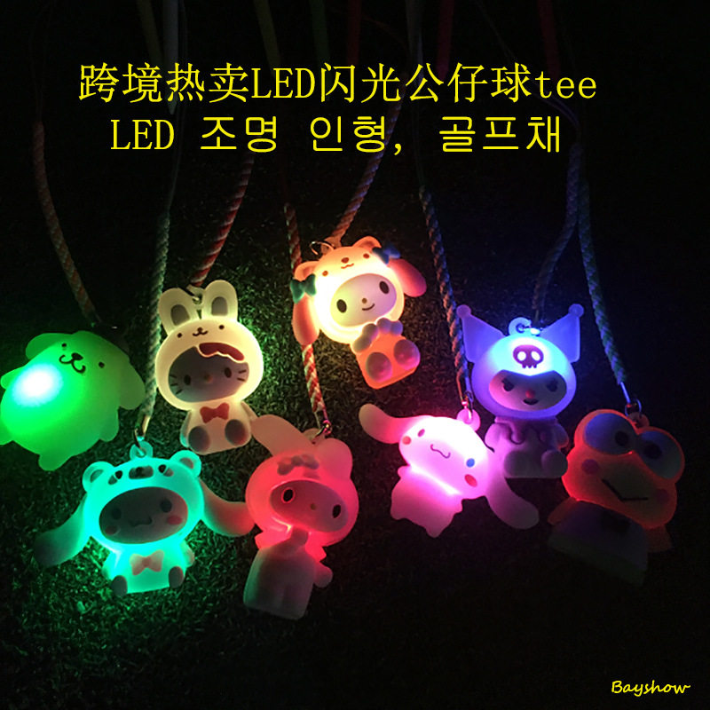 高尔夫球钉球tee卡通公仔LED闪光球钉绳索防丢失塑料TEE球座