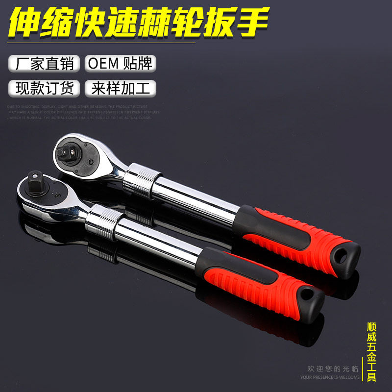 套筒棘轮扳手自动双向快速板手1/2大中小飞五金汽修工具 伸缩扳手