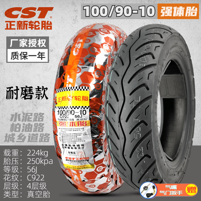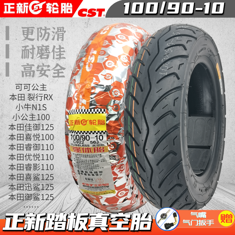 正新轮胎100/90-10真空胎踏板摩托车外胎10090喜悦裂行125半热熔