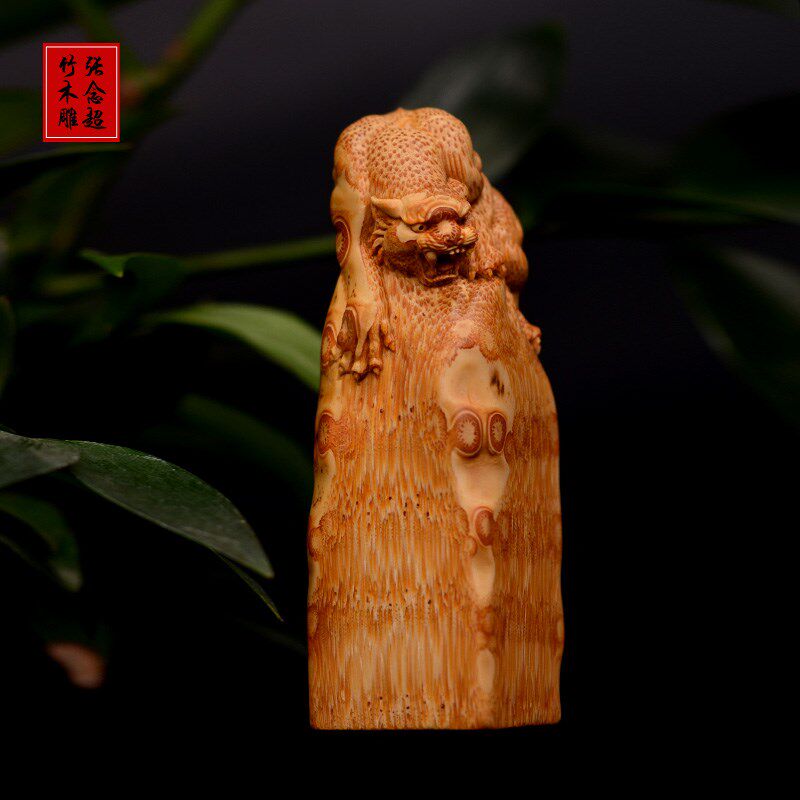 精选竹根雕下山虎摆件竹雕虎虎生威手把件张念超作品印章摆件盘玩