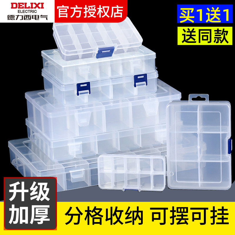 德力西多格零件盒螺丝收纳盒塑料透明分类格子工具电子元件样品盒