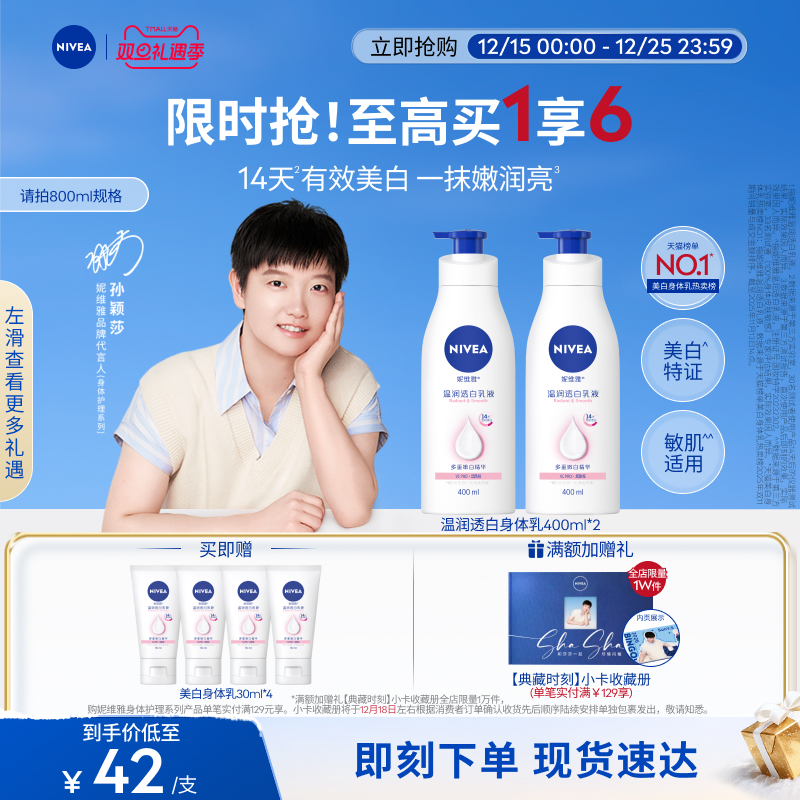 【孙颖莎同款】妮维雅大白瓶身体乳液美白烟酰胺温润透白滋润干燥