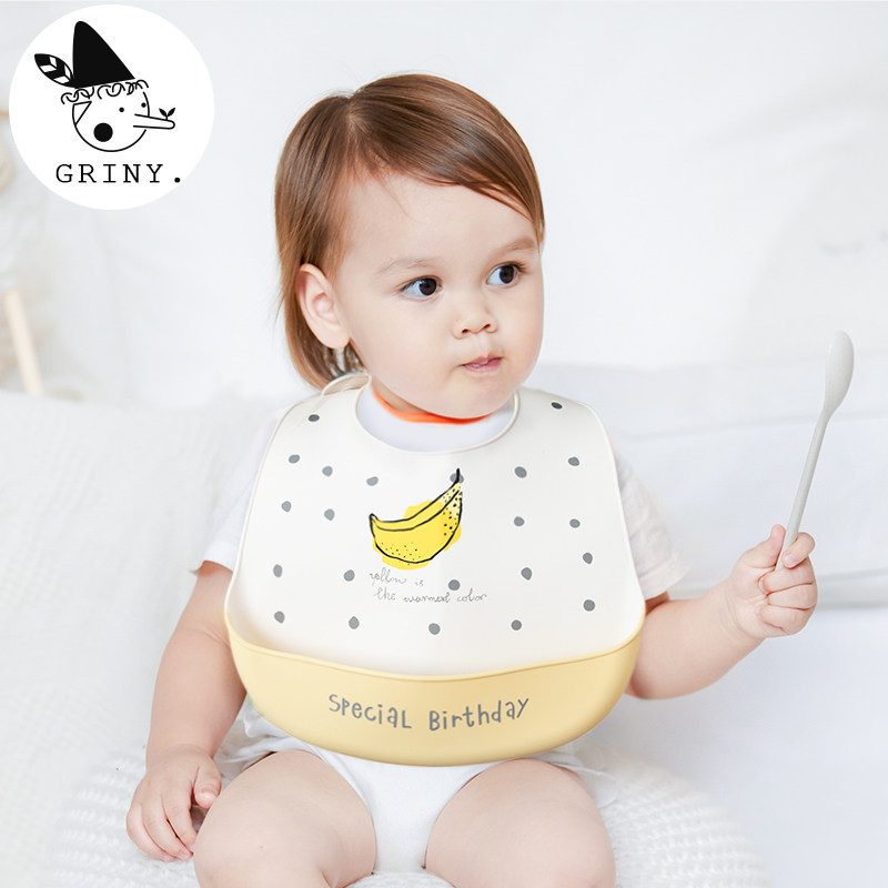 Griny格里尼婴儿硅胶吃饭围兜宝宝防水围嘴食饭兜儿童小孩口水兜
