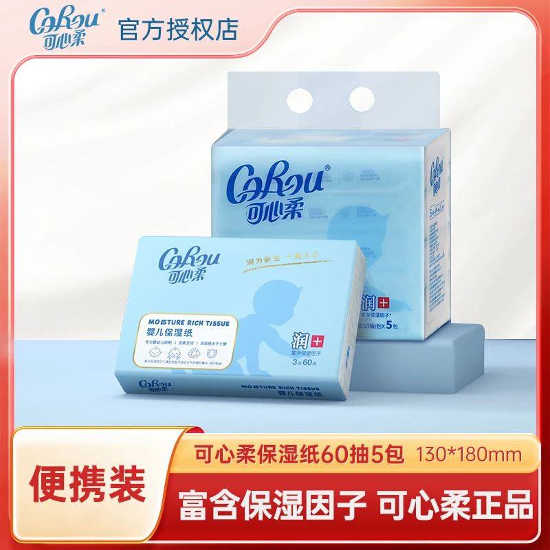 COROU/可心柔新生儿婴幼儿柔润亲肤面巾纸超柔母婴便携60抽5包
