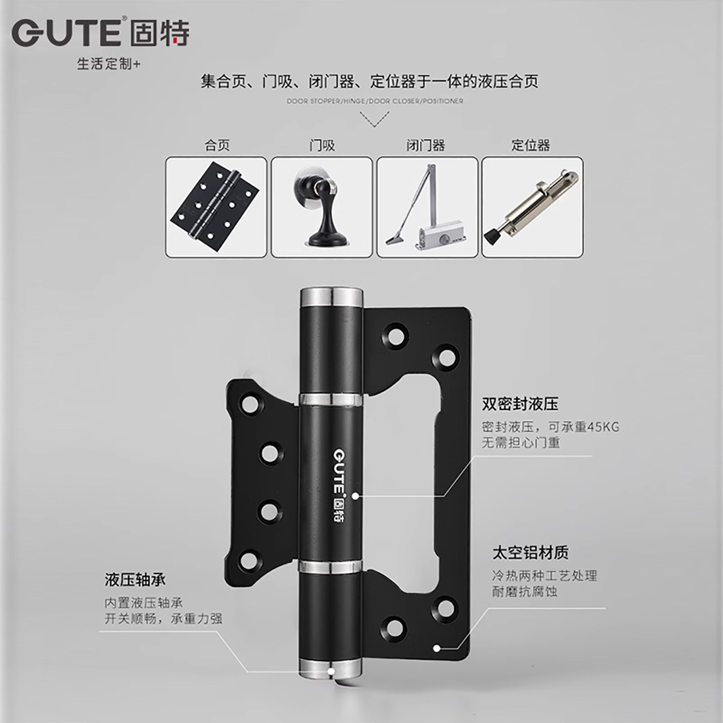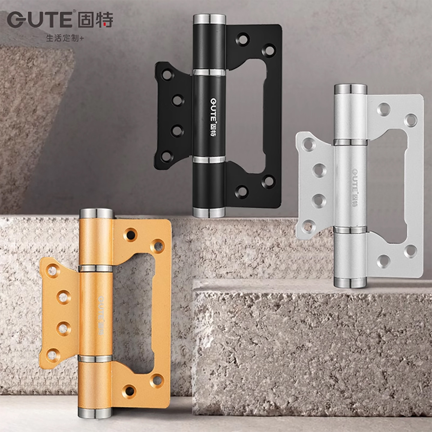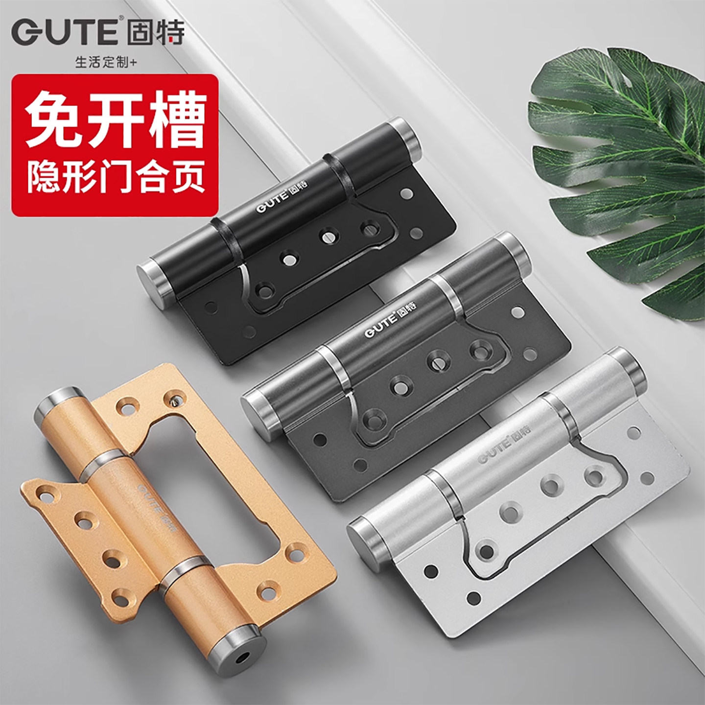 固特隐形门合页子母免开槽液压缓冲闭门器自动关门回弹簧闭门铰链