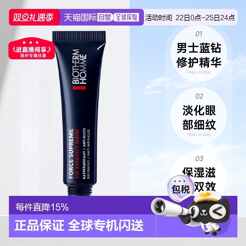 推荐理由:欧洲直邮Biotherm碧欧泉男士蓝钻眼部精华乳淡化滋养修护15ml正品