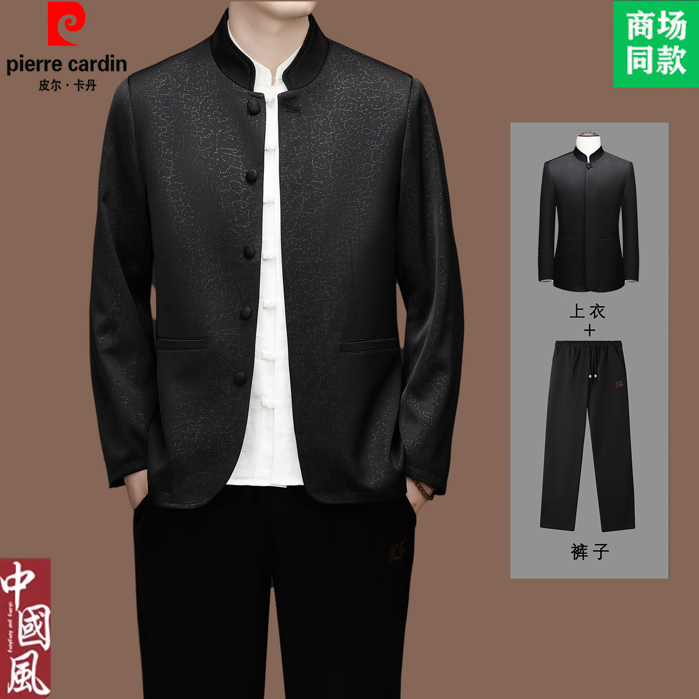 推荐理由:皮尔卡丹中国风唐装外套男士春秋复古中山装生日结婚礼服爸爸套装