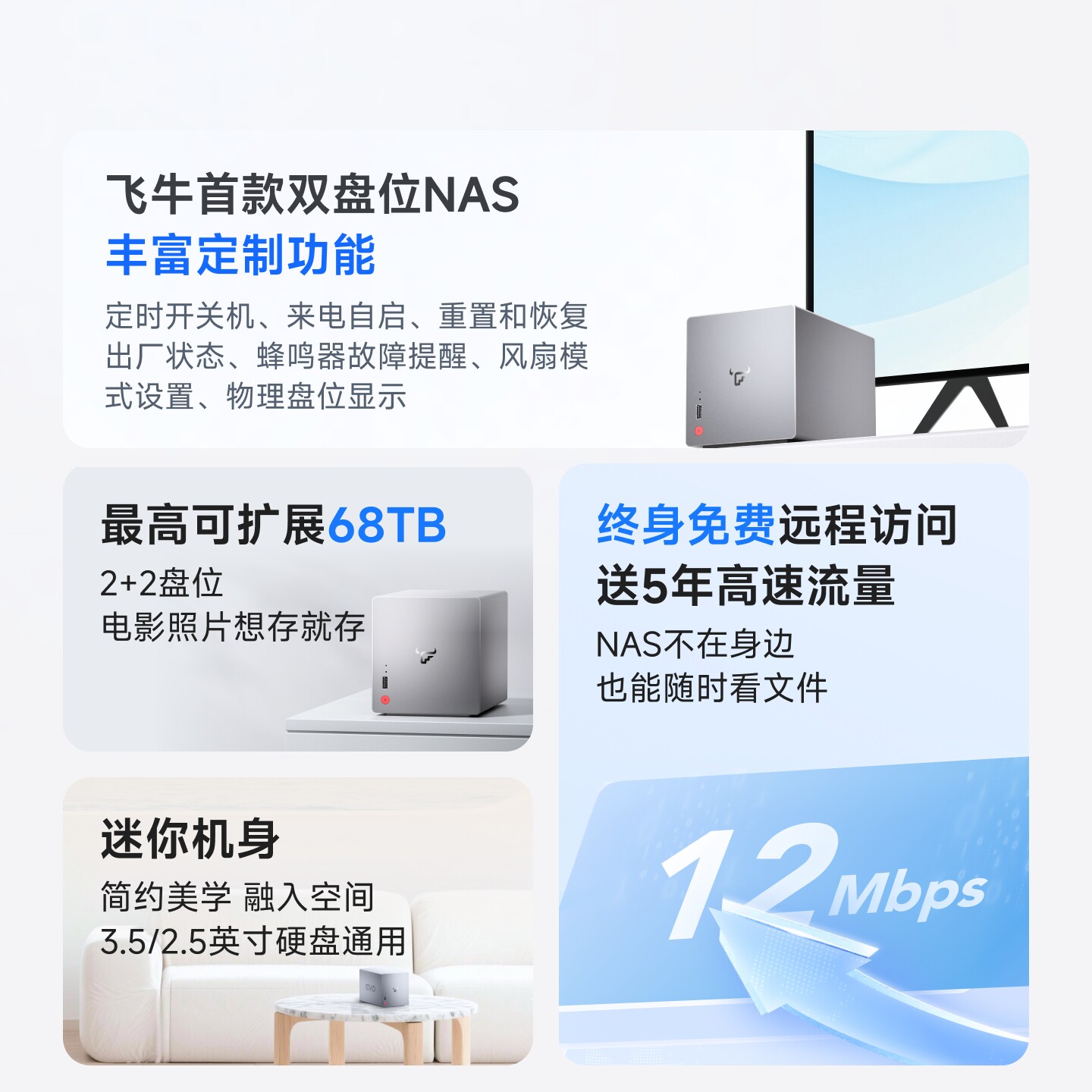 【新品】飞牛nas智能存储EVO 2双盘位N150家庭网络存储私有云主机手机扩容相册备份服务器硬盘