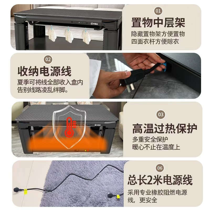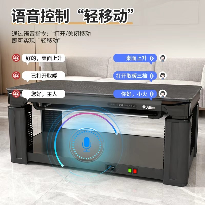 火焰山取暖桌家用客厅电暖烤火炉可升降茶几一体2025新款智能语音