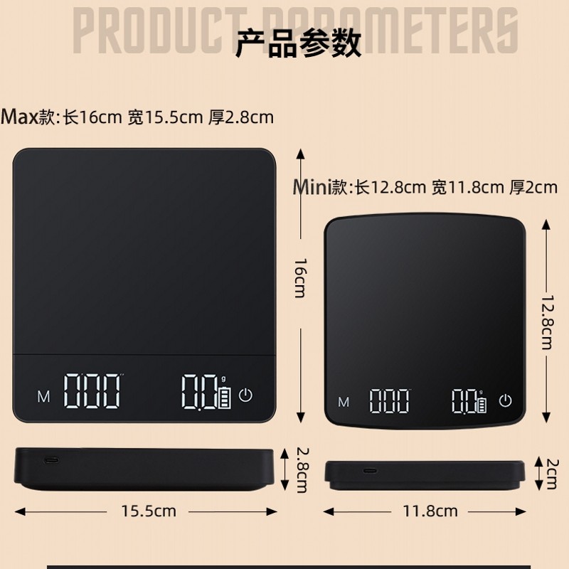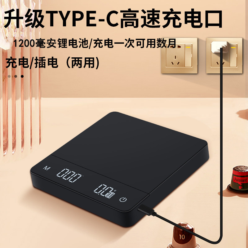 迷你手冲咖啡电子秤家用意式咖啡称克重专用计时秤精准厨房秤防水