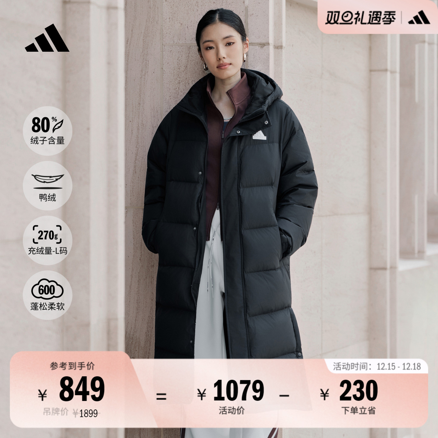 拒水暖「芯」科技长款保暖鸭绒连帽羽绒服男女adidas阿迪达斯