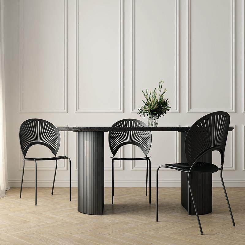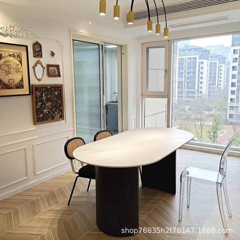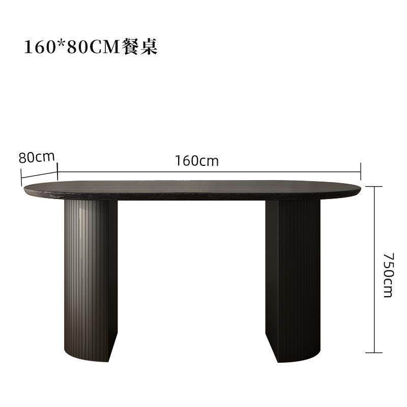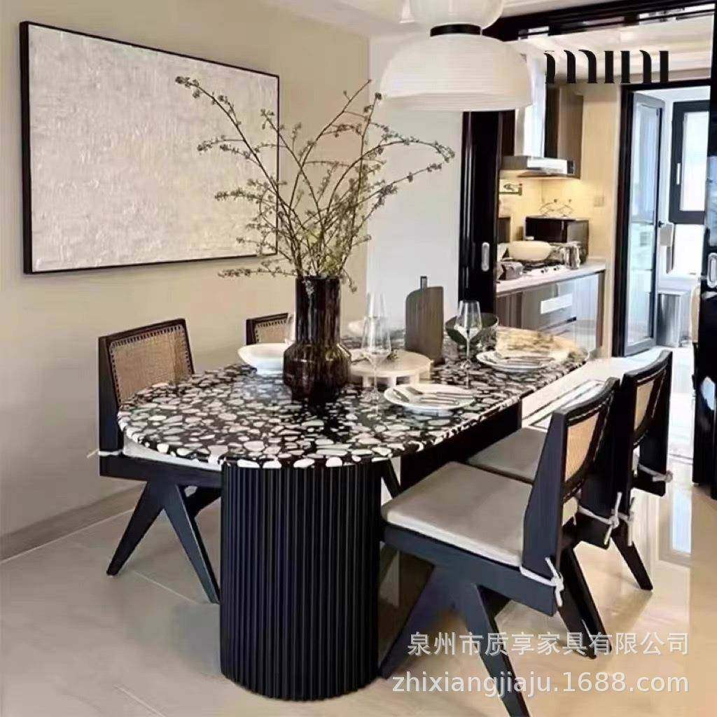 法式复黑色MLC实木餐桌桌椅古组合样餐板大理石桌椭圆形中岛台间