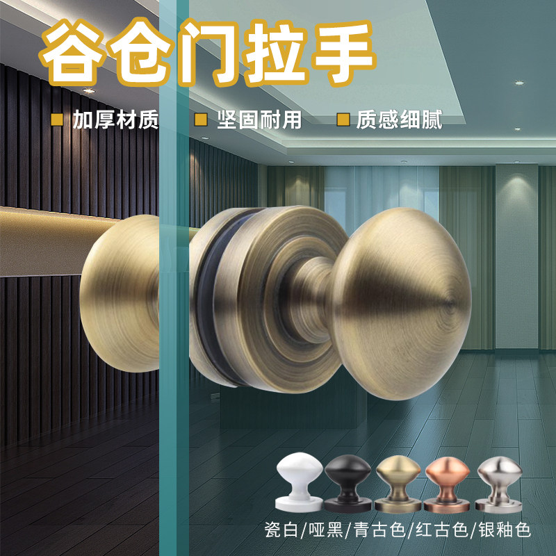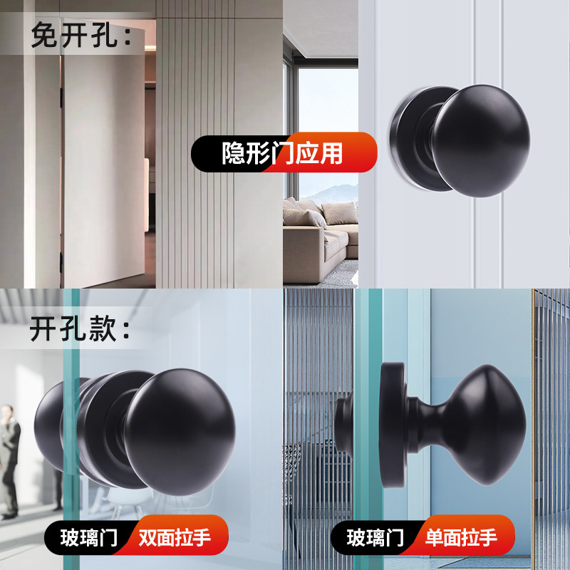 谷仓门拉手隐形门把手免打孔木门室内房门实心单孔玻璃门把手黑色