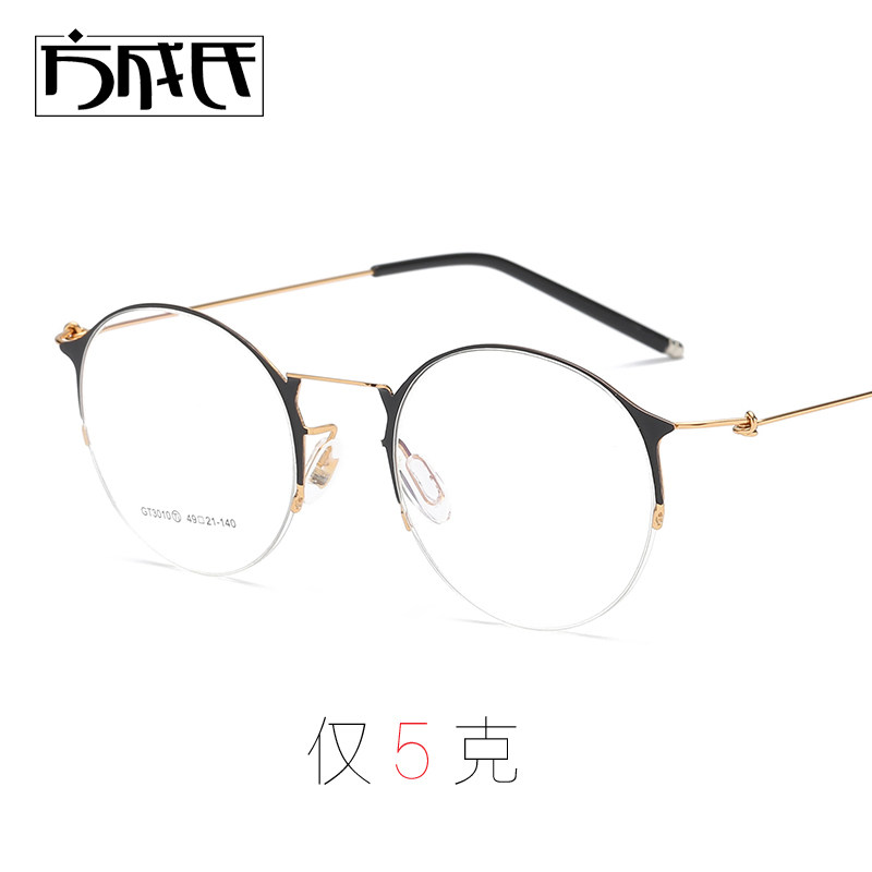 无螺丝眼镜框女半框超轻记忆钛圆形5克眼睛架大脸配近视眼镜3010