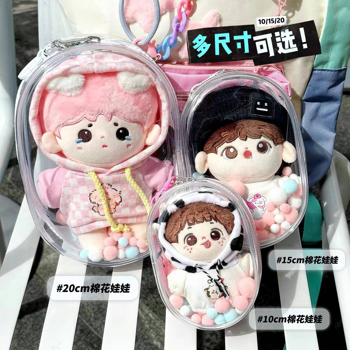10cm娃外出遛娃包透明防尘pvc明星公仔追星应援棉花娃娃展示痛包