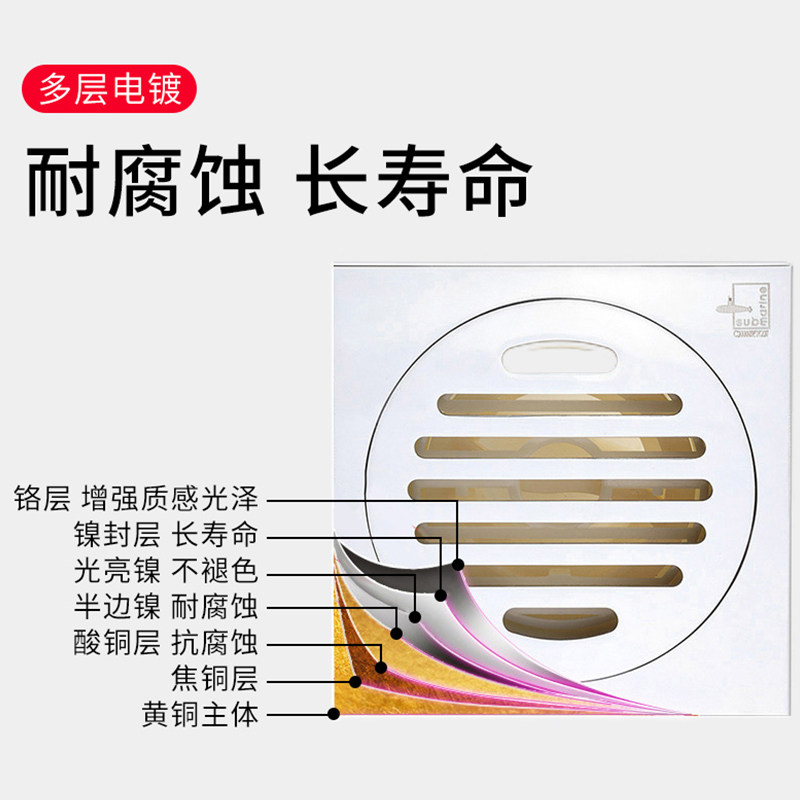 潜水艇原装地漏盖下水道封口盖卫生间防臭洗衣机浴室封闭通用配件