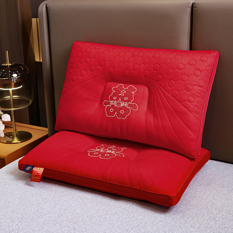 推荐理由:婚庆枕芯一对装保健枕护颈大红色48x74纯棉刺绣新婚嫁妆全棉枕头