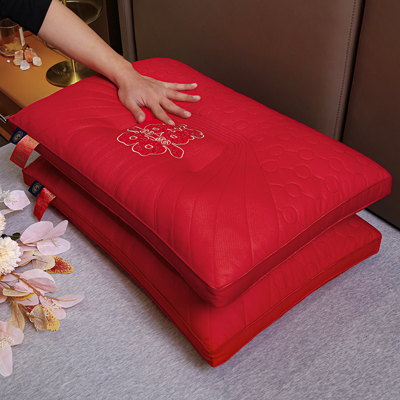 婚庆枕芯一对装保健枕护颈大红色48x74纯棉刺绣新婚嫁妆全棉枕头