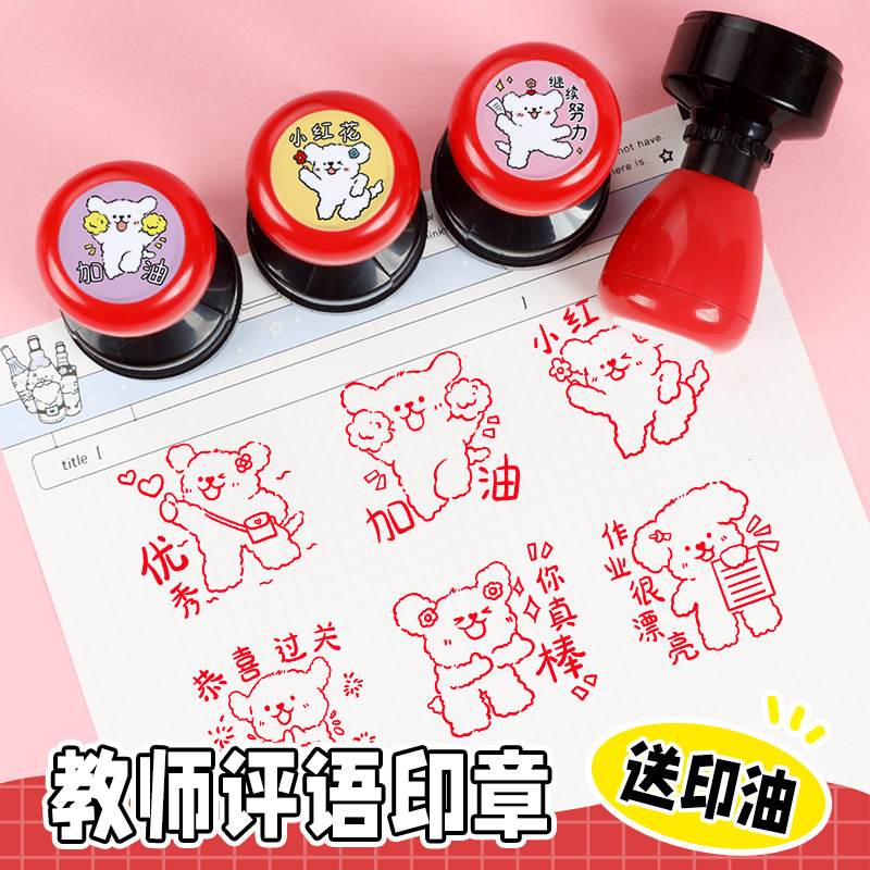 线条狗表情包印章儿童卡通chiikawa乌萨奇按压式小印章老师大拇指你真棒幼儿园小红花奖章盖章批改作业教师用