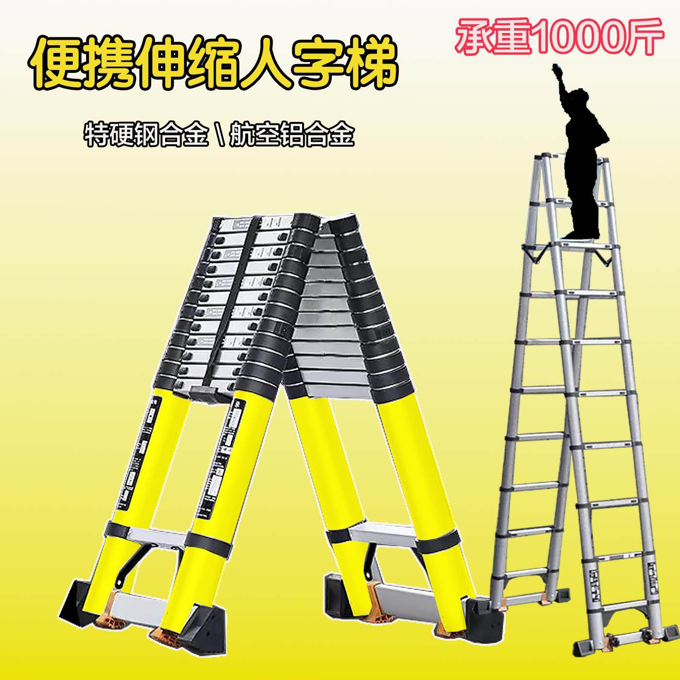 多功能伸缩人字梯6/5/4米工程特粗厚铝合金硬钢升降可折叠双面梯