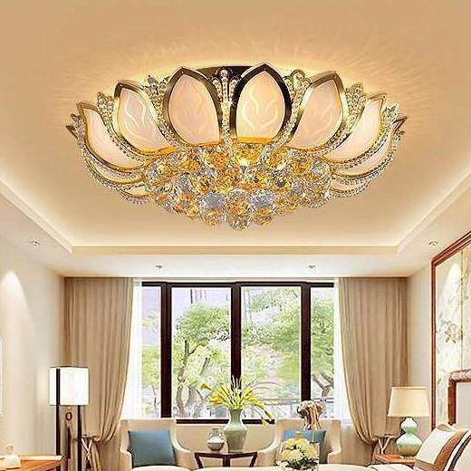 欧式金色水晶灯圆形现代卧室灯简约家用客厅餐厅灯三色莲花吸顶灯