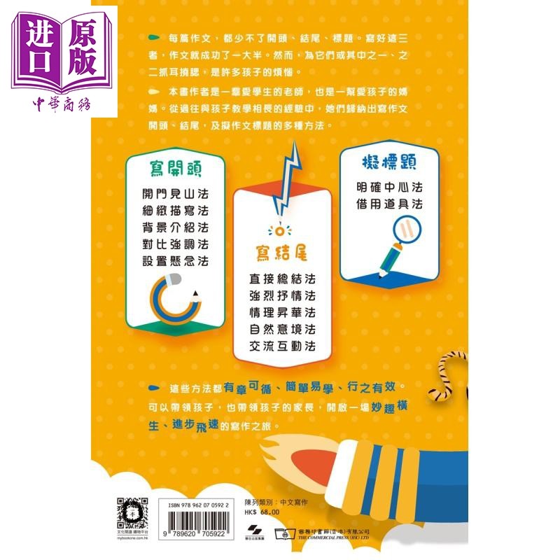 推荐理由:作文开头 结尾 拟题很简单 港台原版 三支铅笔读写研究中心 香港商务印书馆 中文写作【中商原版】