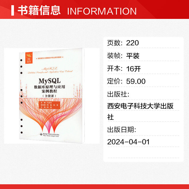 MySQL数据库原理与应用案例教程(含微课) 孔庆月 编 其它计算机/网络书籍大中专 新华书店正版图书籍 西安电子科技大学出版社
