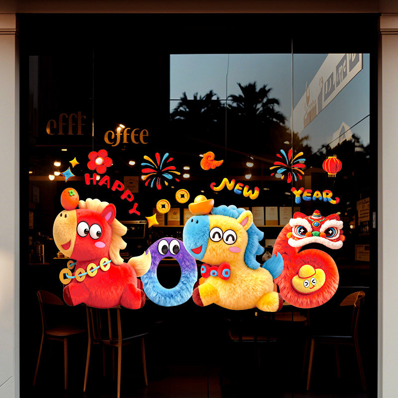 2026新款裸眼5D马年窗花静电贴玻璃贴纸新年春节装饰品过年布置贴