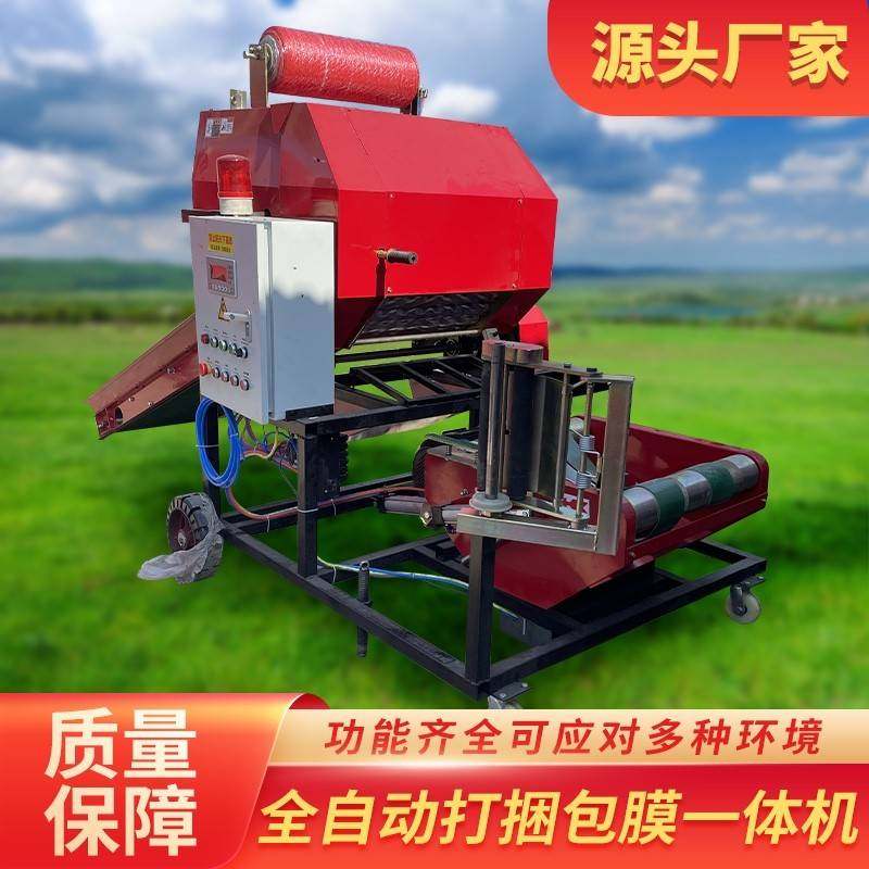 新款青储饲料打包膜机干湿玉米牧草秸秆粉碎全自动打捆包膜一体机
