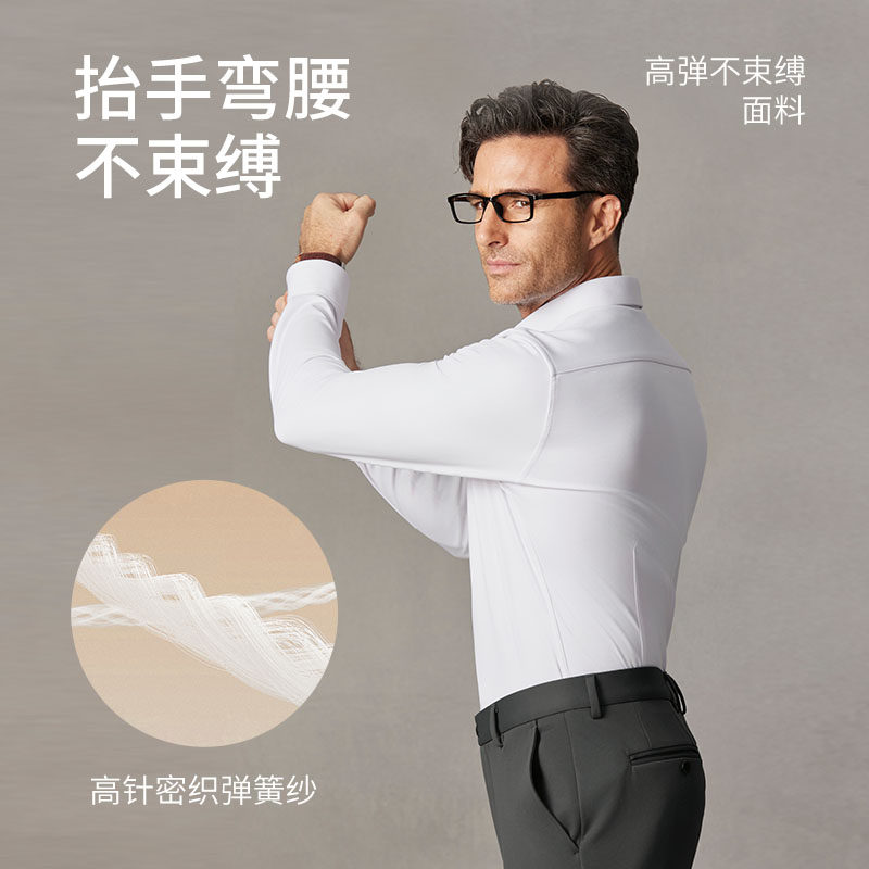 推荐理由:【加绒保暖】欧定头等舱长袖衬衫男新款苍雪白色免烫商务定制衬衣