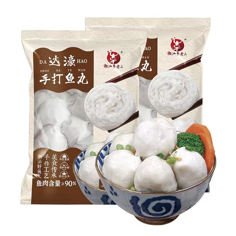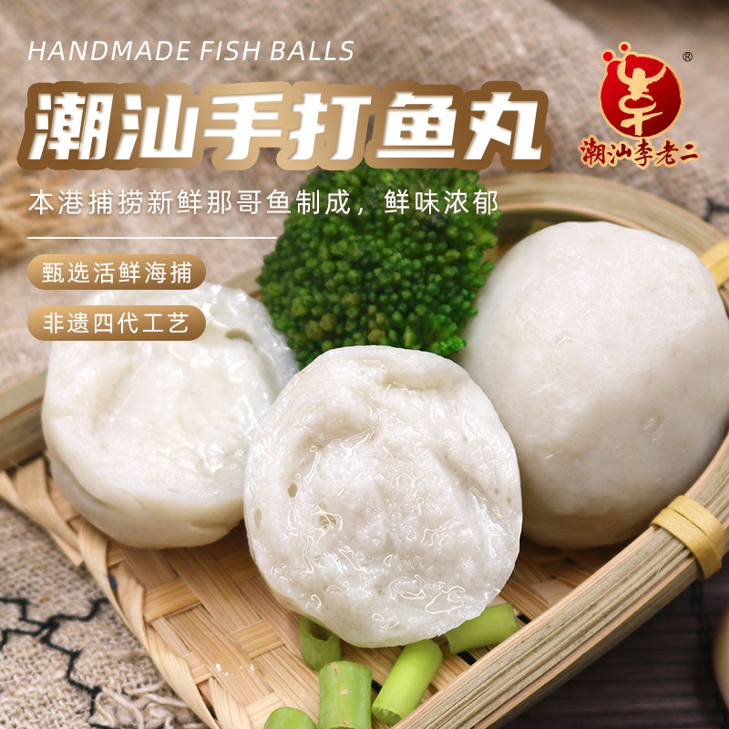 李老二达濠手打鱼丸/墨鱼丸手打鱼丸早餐晚餐煮汤火锅食材鱼肉丸