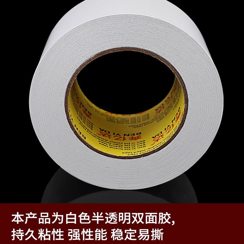 奔亿达特宽双面胶带50米长白色双面胶高粘度大号大卷10cm强力固定无痕超宽两面胶纸半透明加宽工业用双面胶