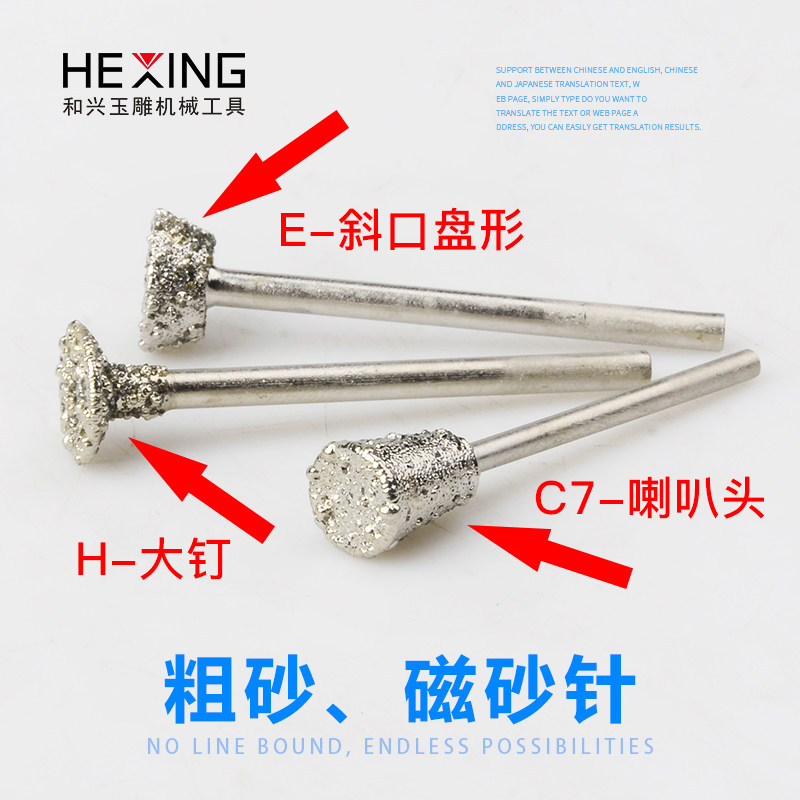 磁砂玉石去皮磨头翡翠原石打磨开窗电动粗沙玉雕金刚砂雕刻工具