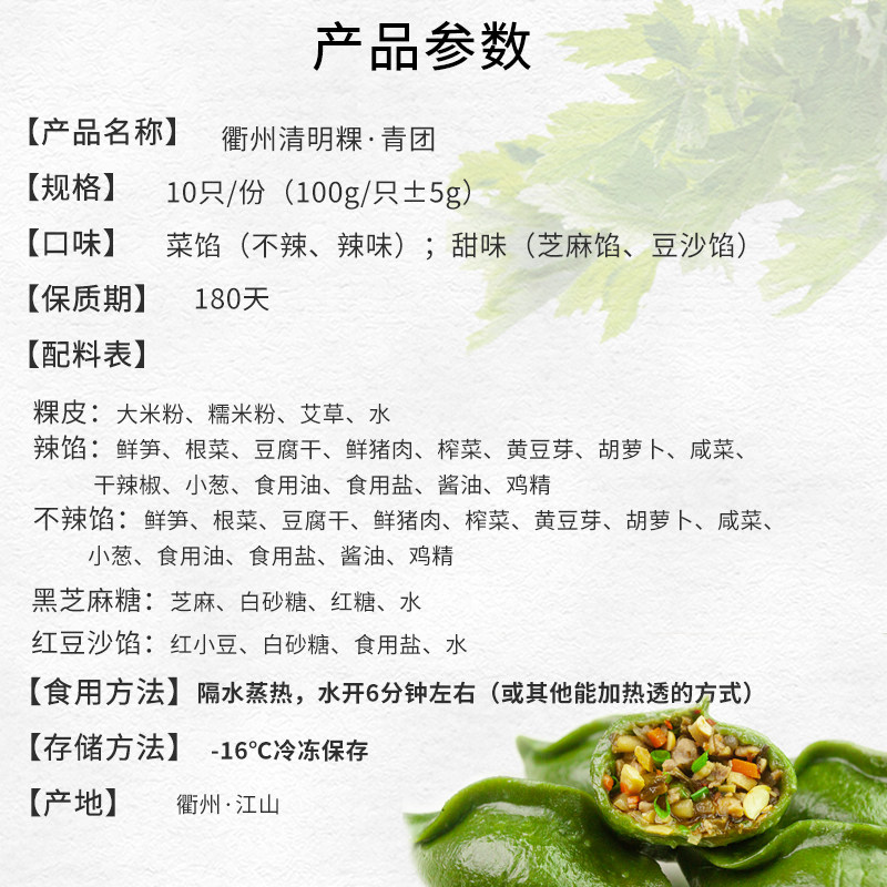 推荐理由:浙江衢州江焙清明果粿艾草青团咸菜馅味芝麻米馃果艾饺早餐半成品