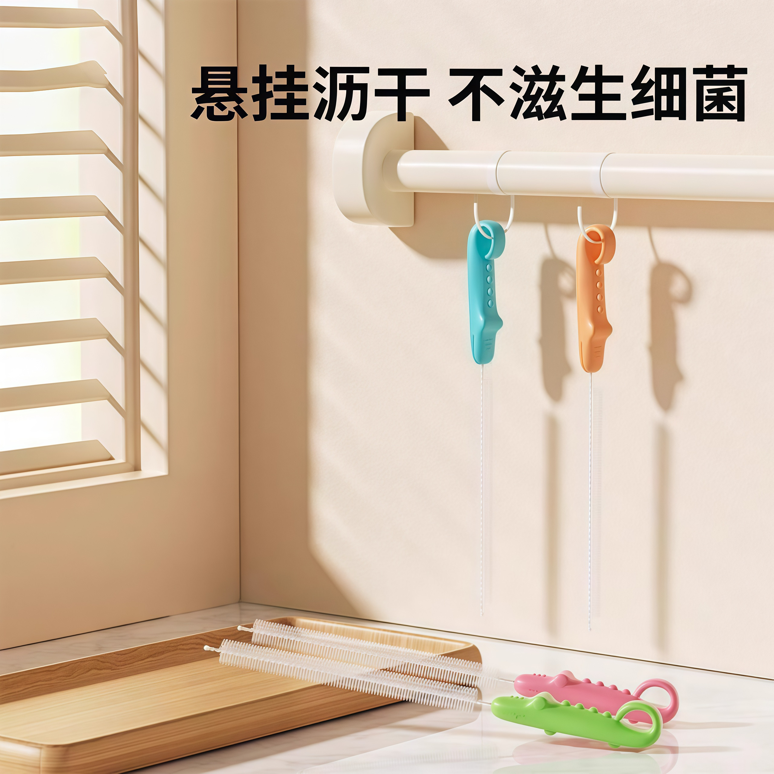婴儿吸管刷奶嘴刷奶瓶刷宝宝用清洗刷小鳄鱼儿童清洁刷子软毛加长