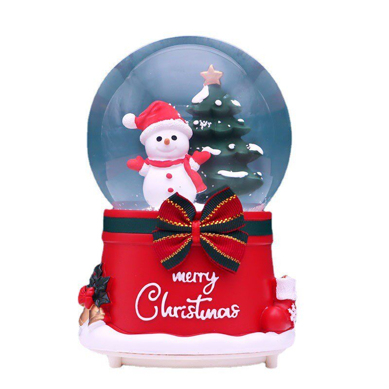 发光飘雪花圣诞老人水晶球音乐盒摆件八音盒儿童圣诞节礼物平安夜